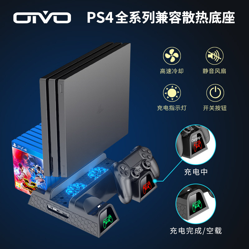 Oivo正品ps4 Slim Pro散熱底座支架手柄充電座風扇充電指示帶碟架